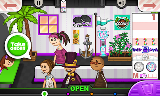 Order Station: Here, you take the orders of each customer. Click on the green ‘Take Order’ button above a customer’s head to listen to his/her instructions. This order is copied down onto a ‘ticket’ which remains in the top right corner of the game screen until the order is complete. The customers line up along your ‘restaurant floor’, and it’s up to you whether you take each order at the same time, or one-by-one. Keep in mind, no customer likes waiting around for their hot food!